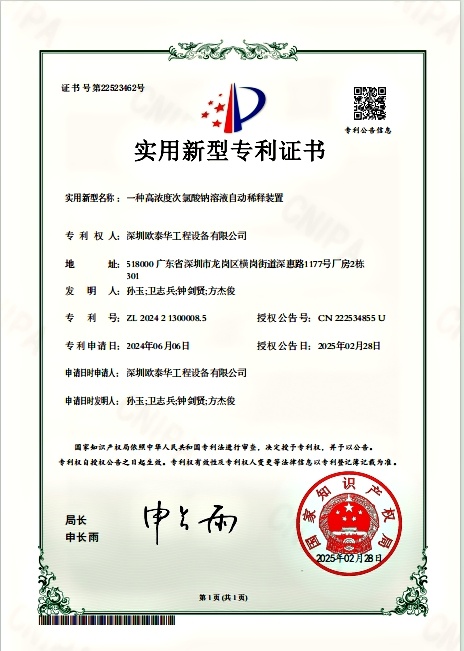 高濃度次鈉溶液稀釋裝置專利