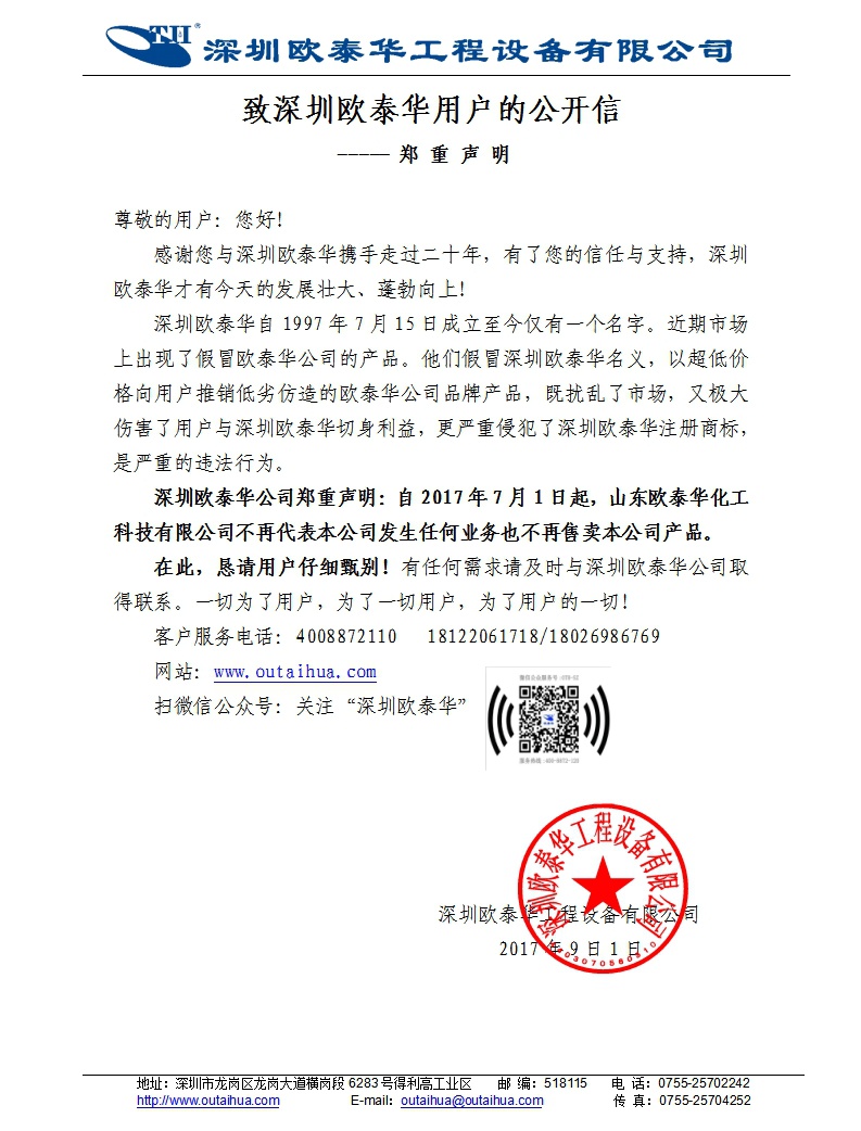 深圳歐泰華鄭重聲明