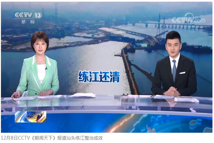 2019年12月8CCTV《朝聞天下》報道汕頭練江整治卓成效,通過源頭截污,環境整體整治,練江流域從屢次被點名的劣類V級變為地表V級水排放。汕頭市希望在練江流域建議長效機制,保障清水入河,長治久清。