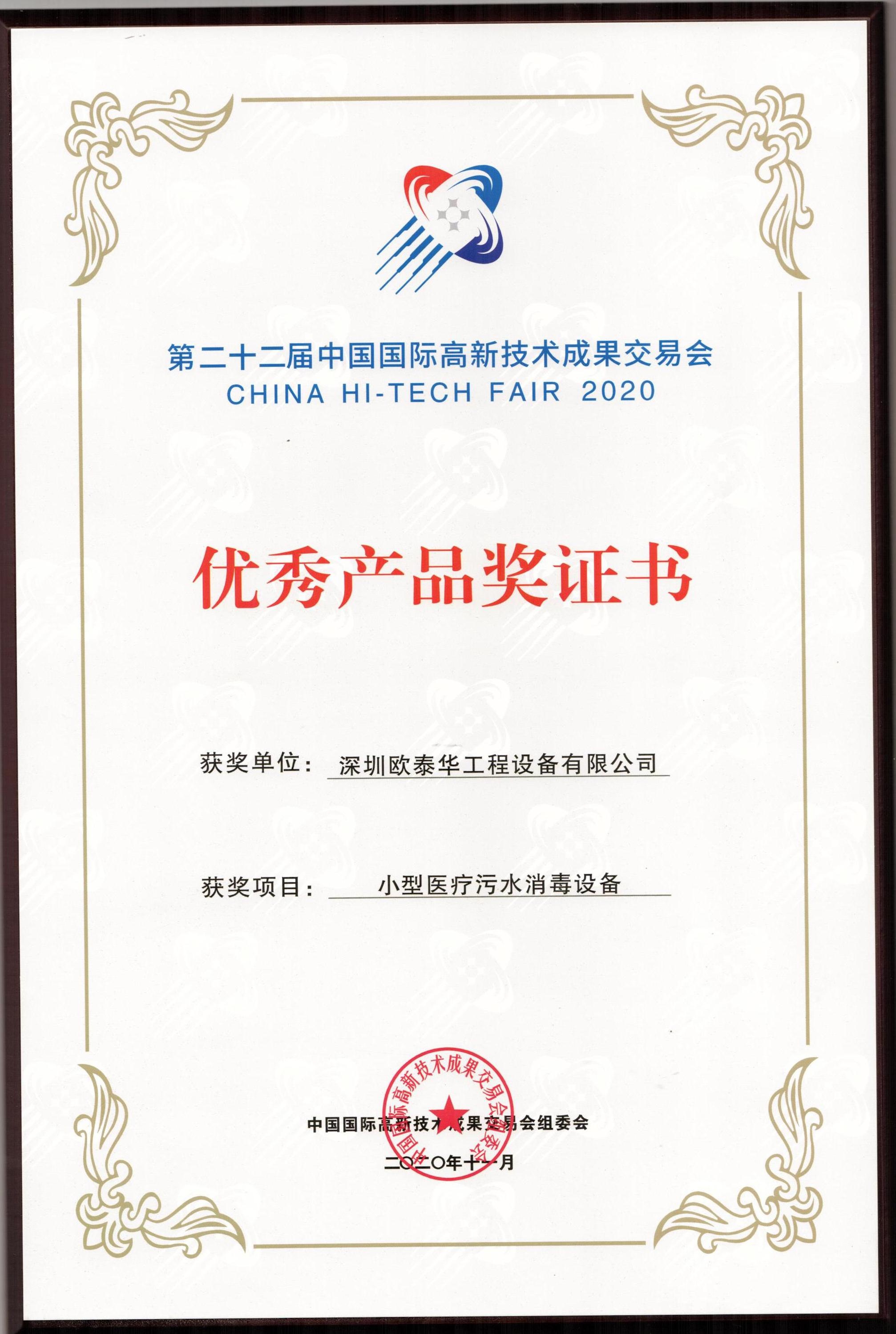 第二十二屆中國國際高新技術成果交易會圓滿落下帷幕。深圳歐泰華公司作為國家高新技術企業,已陪伴高交會走過了18個年頭,產品曾多次榮獲自主知識產權證書;在本屆高交會亮相的歐泰華品牌醫療污水消毒設備又再獲殊榮,這標志著歐泰華產品在國際高科技的舞臺上再獲權威認定。