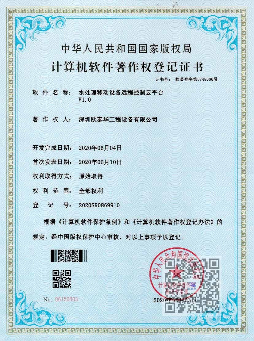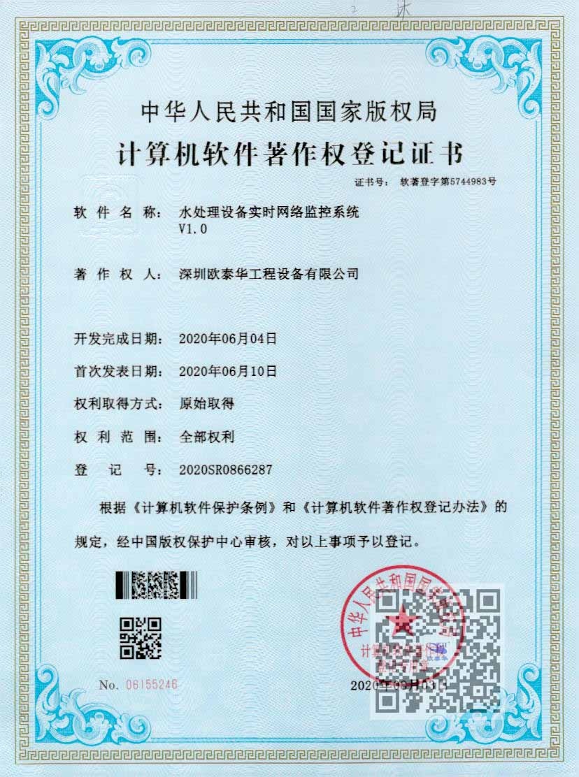 歐泰華自主研發(fā)的智慧水務(wù)系統(tǒng),擁有兩項(xiàng)計(jì)算機(jī)軟件著作登記權(quán)證書,整套系統(tǒng)可同各系列設(shè)備相匹配,可實(shí)現(xiàn)設(shè)備安全監(jiān)測、手機(jī)APP監(jiān)控、安全預(yù)警功能,全天無人值守、操作便捷、運(yùn)行穩(wěn)定。