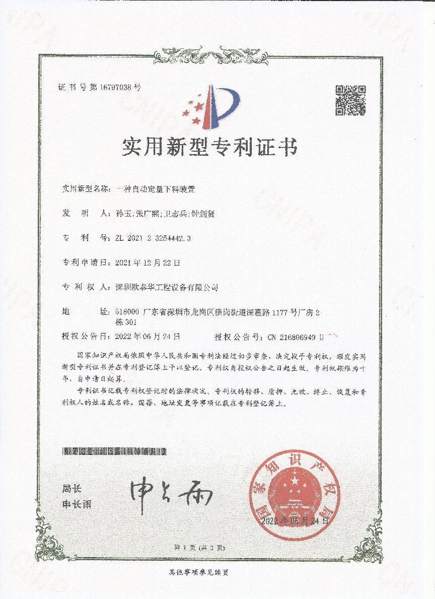 歐泰華公司技術(shù)實(shí)力不斷提升,在產(chǎn)品技術(shù)研發(fā)方面,再次榮獲2項(xiàng)國家實(shí)用新型專利證書。公司在產(chǎn)品應(yīng)用技術(shù)和服務(wù)領(lǐng)域已邁上新臺階。歐泰華將一如既往發(fā)揮企業(yè)技術(shù)優(yōu)勢,繼續(xù)為廣大新老客戶提供優(yōu)質(zhì)、高效的服務(wù)。