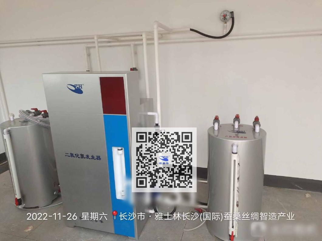 該工程共分三期建設,其中一期采用最新一代歐泰華化學法二氧化氯發生器,消毒效果好,設備運行十分穩定。從智能化養蠶廠房、繅絲廠房、能源站、宿舍到污水處理站等,所產生的污水將全面實現再生循環利用;全部建成后預計年產值達300億元,將成為全球最大蠶桑絲綢智造基地。